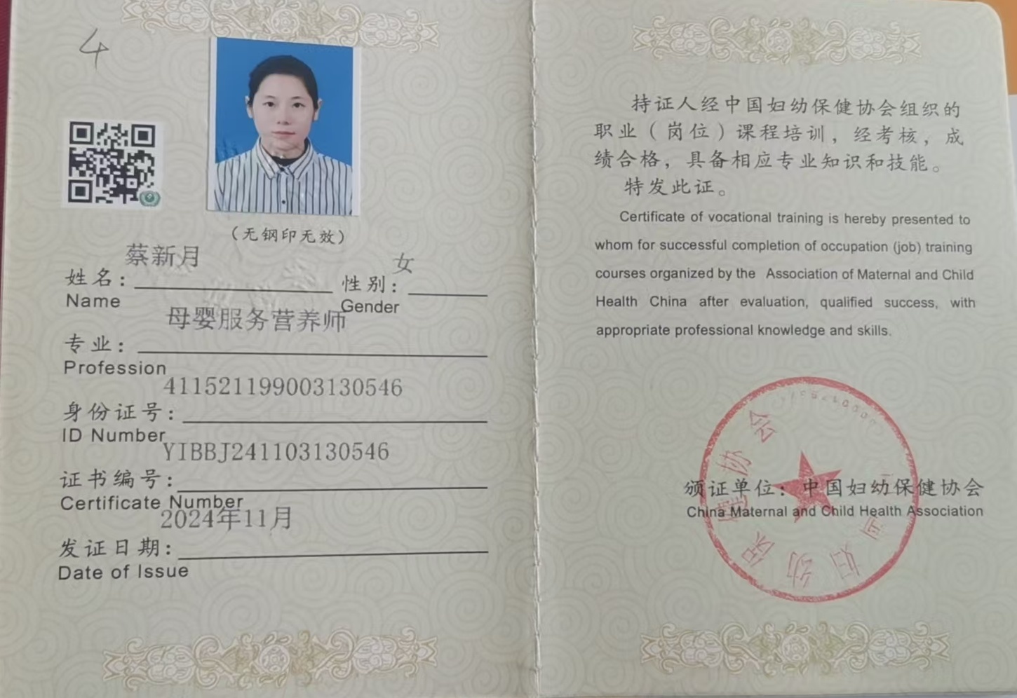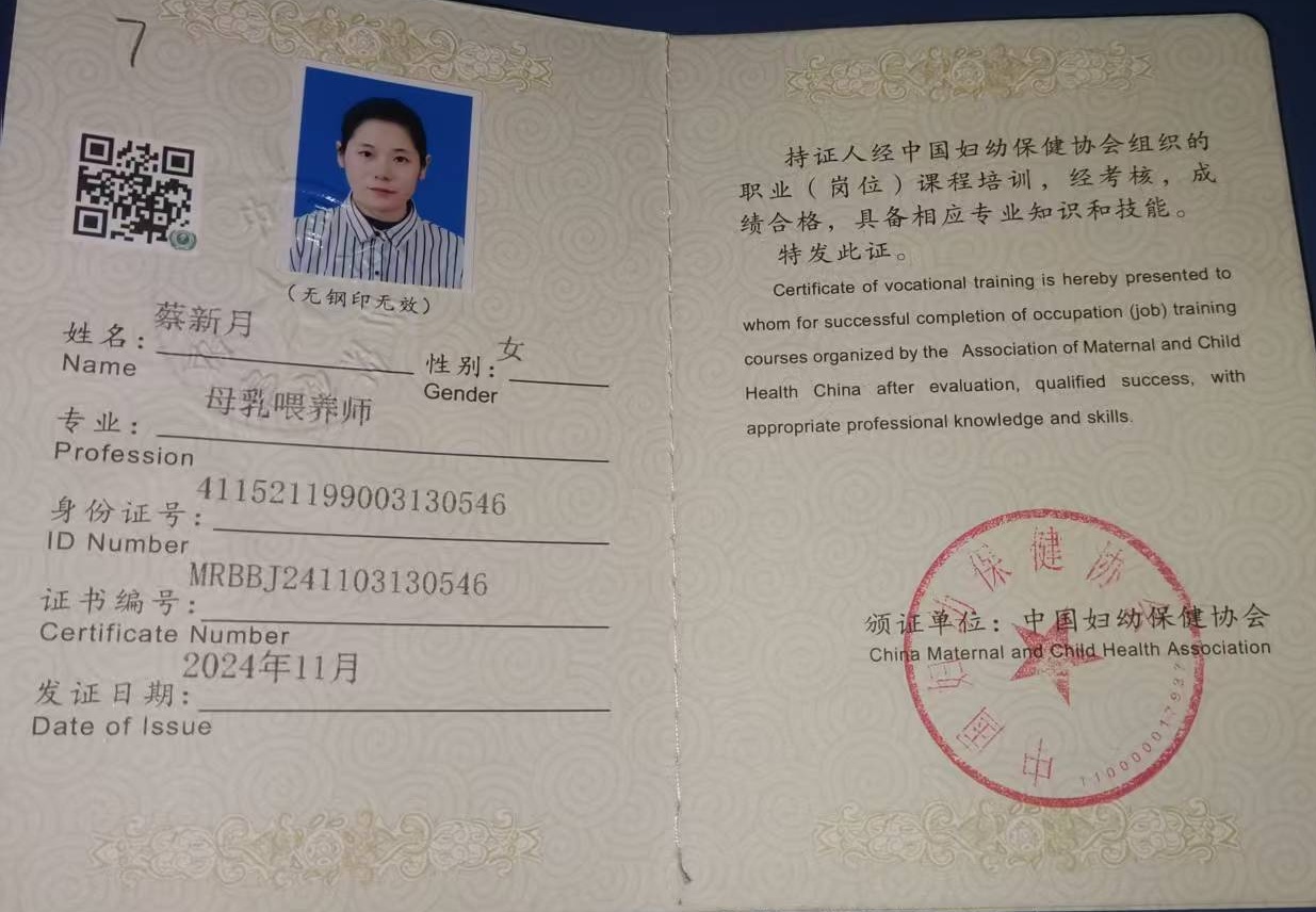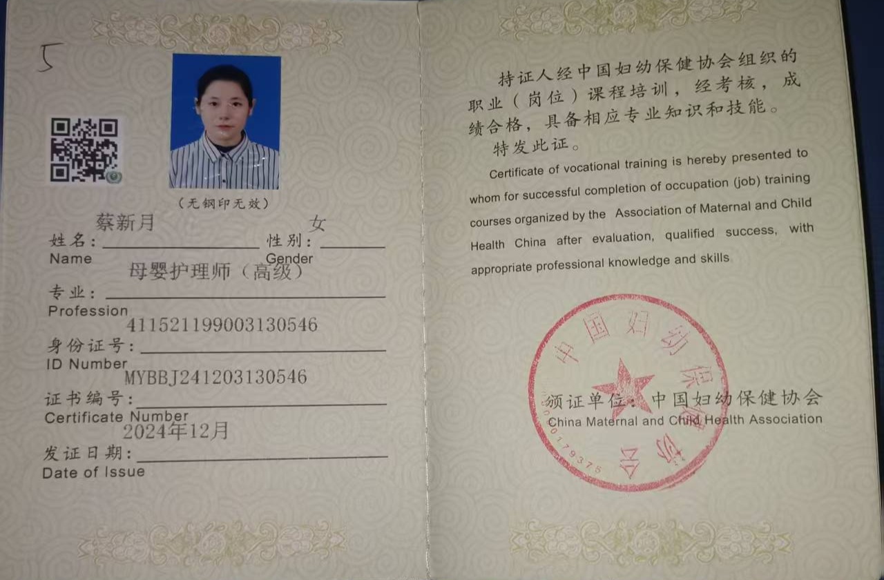 高级母婴护理师营养师高级母乳喂养指导师产后修复师